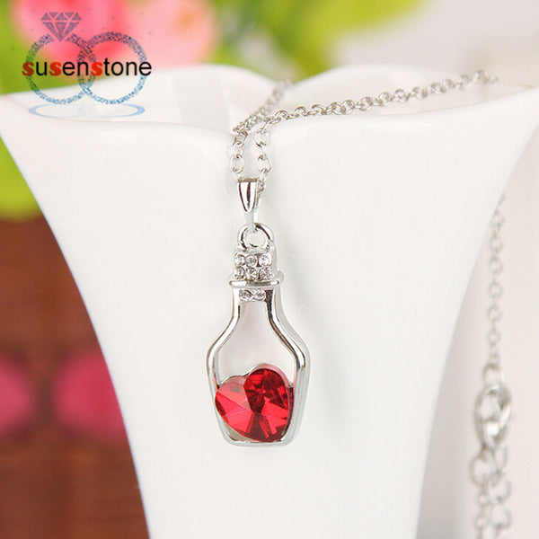 necklaces: Love Drift Bottles Pendant Necklace Heart Crystal Pendant