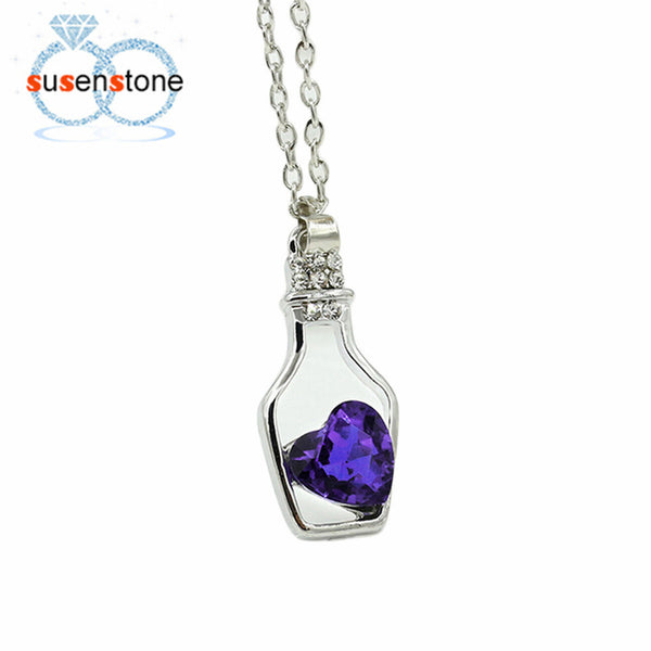 Creative Women Fashion Popular Style Necklace Ladies Love Drift Bottles Blue Heart Crystal Pendant Collares Mujer for girl